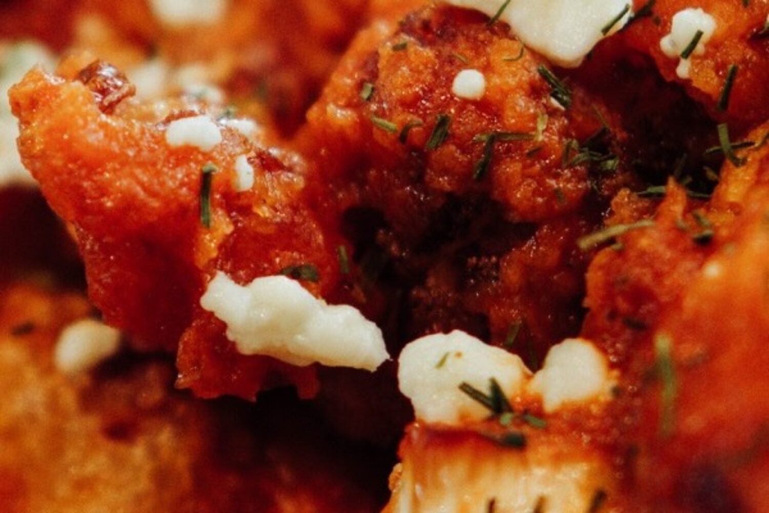 House-breaded and fried cauliflower tossed in buffalo sauce & topped with gorgonzola crumbles – served with ranch