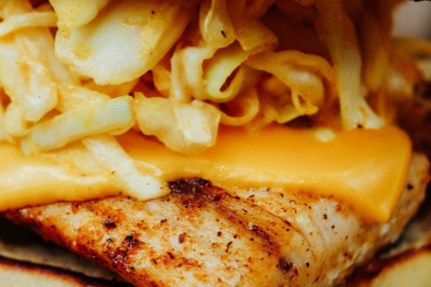 Choice of Grilled or Fried Mahi, creamy slaw, American cheese, pickles with malt vinegar aioli on a brioche bun